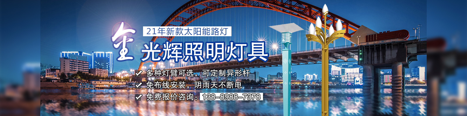 沈陽金光輝道路照明工程有限公司是一家從事太陽能路燈、庭院燈、高桿燈、景觀燈、草坪燈、工礦燈、LED照明、監(jiān)控桿、信號燈桿、音樂噴泉等室內外照明燈具綜合性生產廠家及專業(yè)的研發(fā)、生產、銷售、服務為一體的技術企業(yè)。